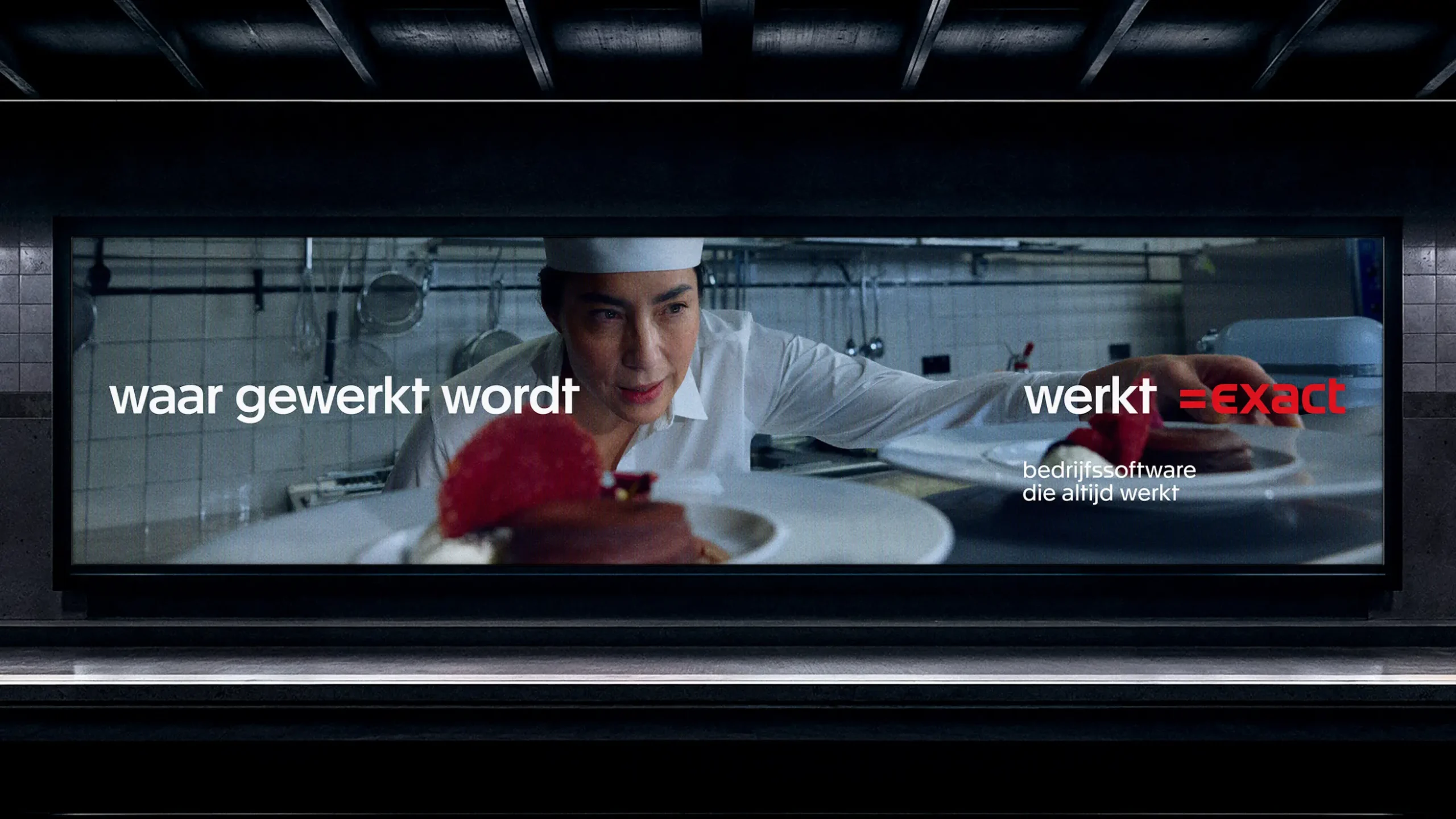 A new marketing campaign launched in the end of 2025: ‘Waar gewerkt wordt, werkt Exact’ (which loosely translates to where people are working, Exact runs). The subtitle translates to ‘business software that always works’. From kitchen to construction site, from office to warehouse: our business software is the solid foundation users can build on. With financial software as the beating heart and ERP software that connects and automates all their business processes. Essential tools in a world that never stands still.