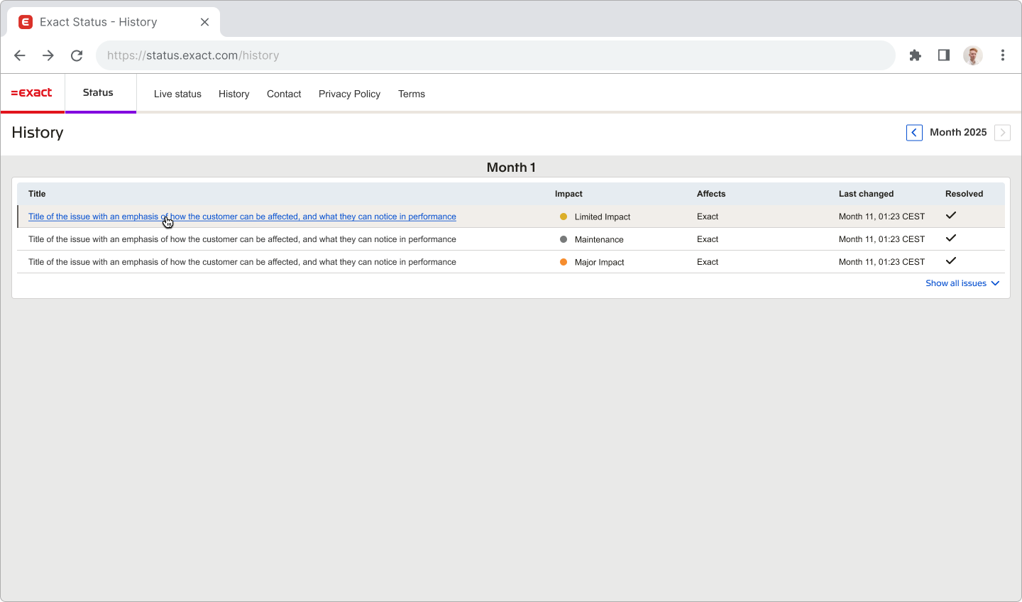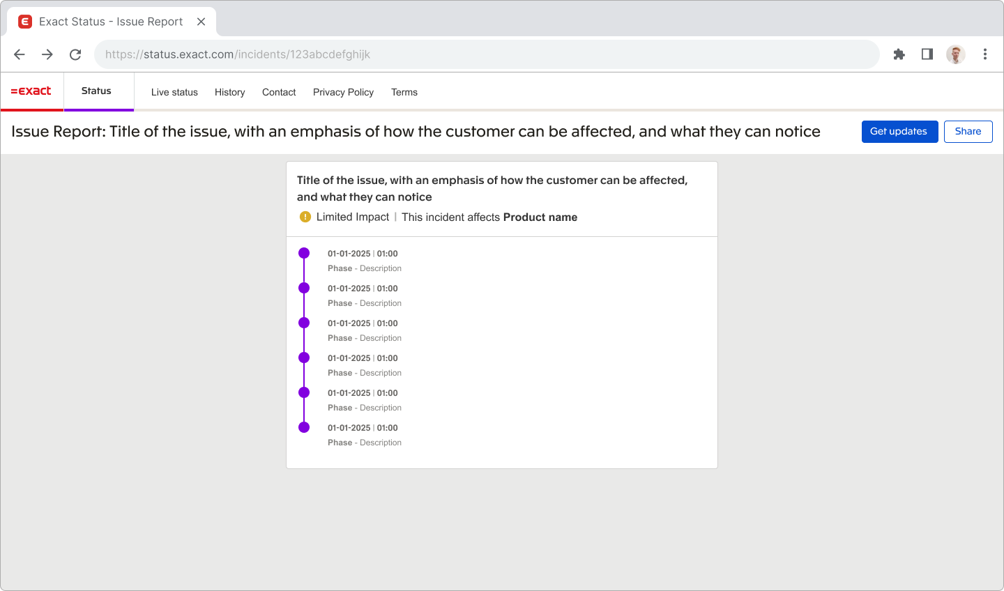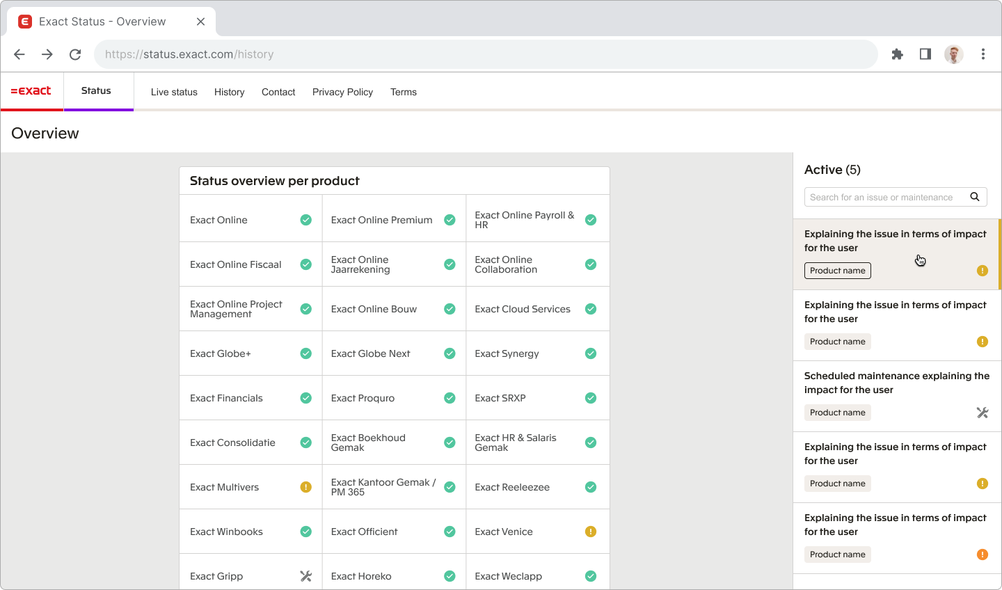 A central place for Exact’s proactive status reporting​, in a fast and reliable way
