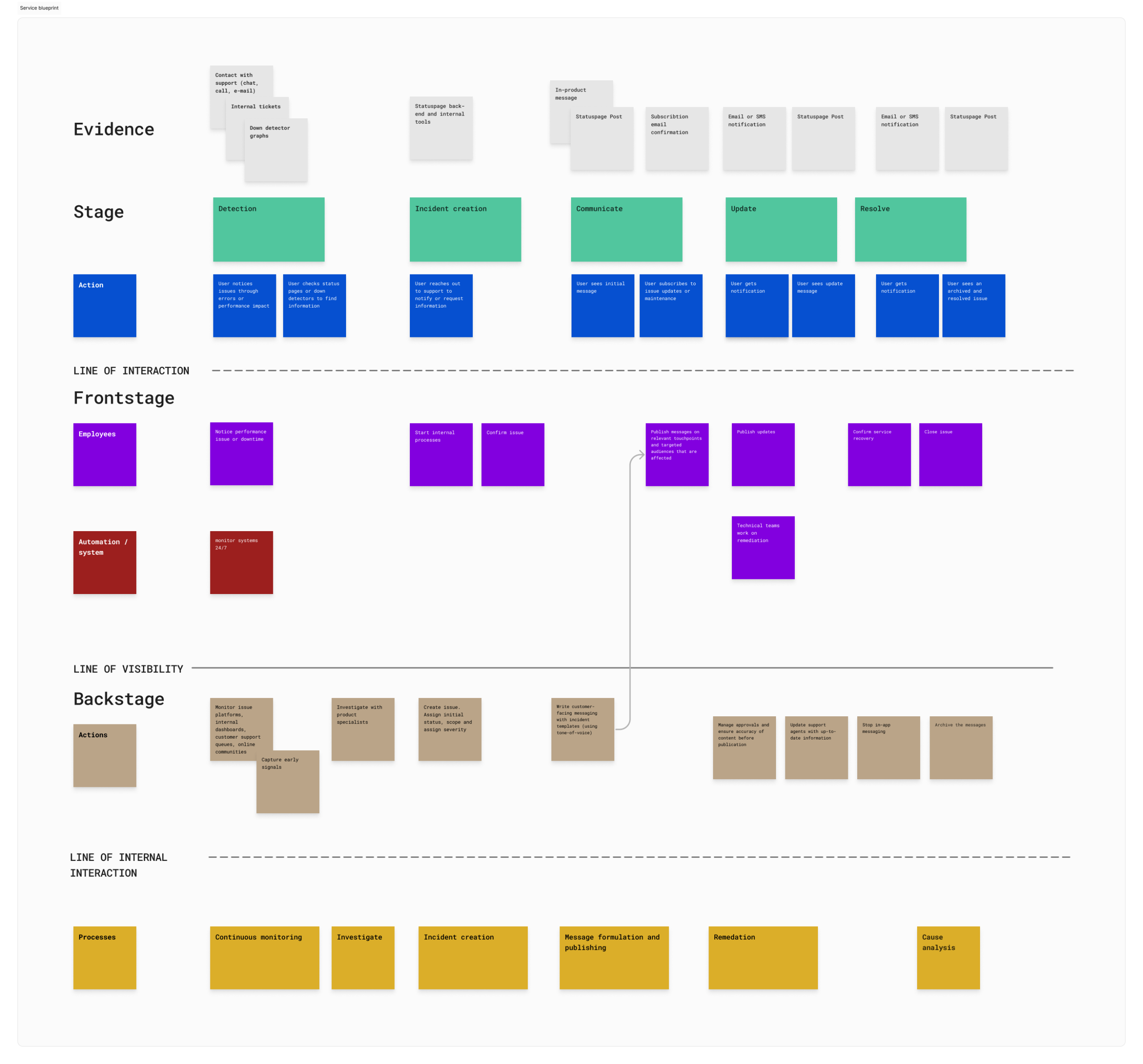 To tackle this, I started by listening. I spoke with support agents who described the exhausting cycle of repeating the same updates with support tickets. I interviewed leads who admitted that even internally, information was scattered. The request from our users were clear: they wanted transparency, relevance predictability, and reassurance. Alerts were generated quickly, but translating them into customer-friendly updates was slow and inconsistent. Critical details like impact level or estimated resolution time were often missing, or phrased inconsistently. Also, it wasn’t really clear how it all worked together.